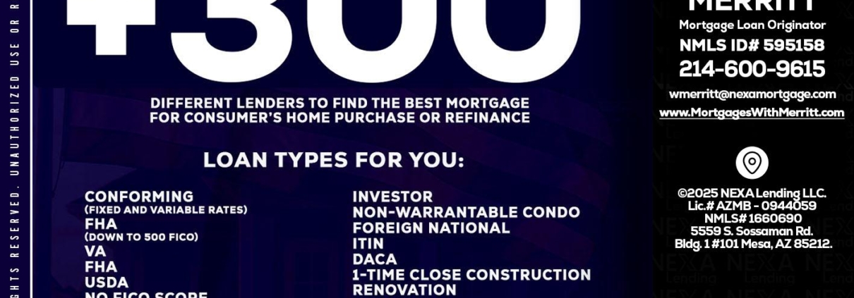 Hi, my name is Bill Merritt. I’m a Loan Officer with NEXA Lending LLC., offering personalized mortgage solutions, fast customized quotes, great rates and service with integrity.