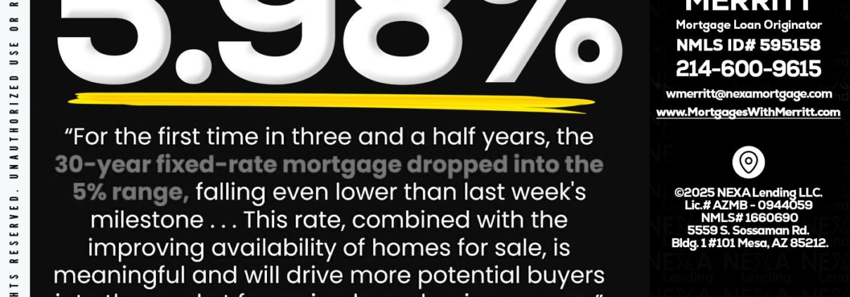 5.98% - Bill Merritt -Mortgage Loan OriginatorHi, my name is Bill Merritt. I’m a Loan Officer with NEXA Lending LLC., offering personalized mortgage solutions, fast customized quotes, great rates and service with integrity.