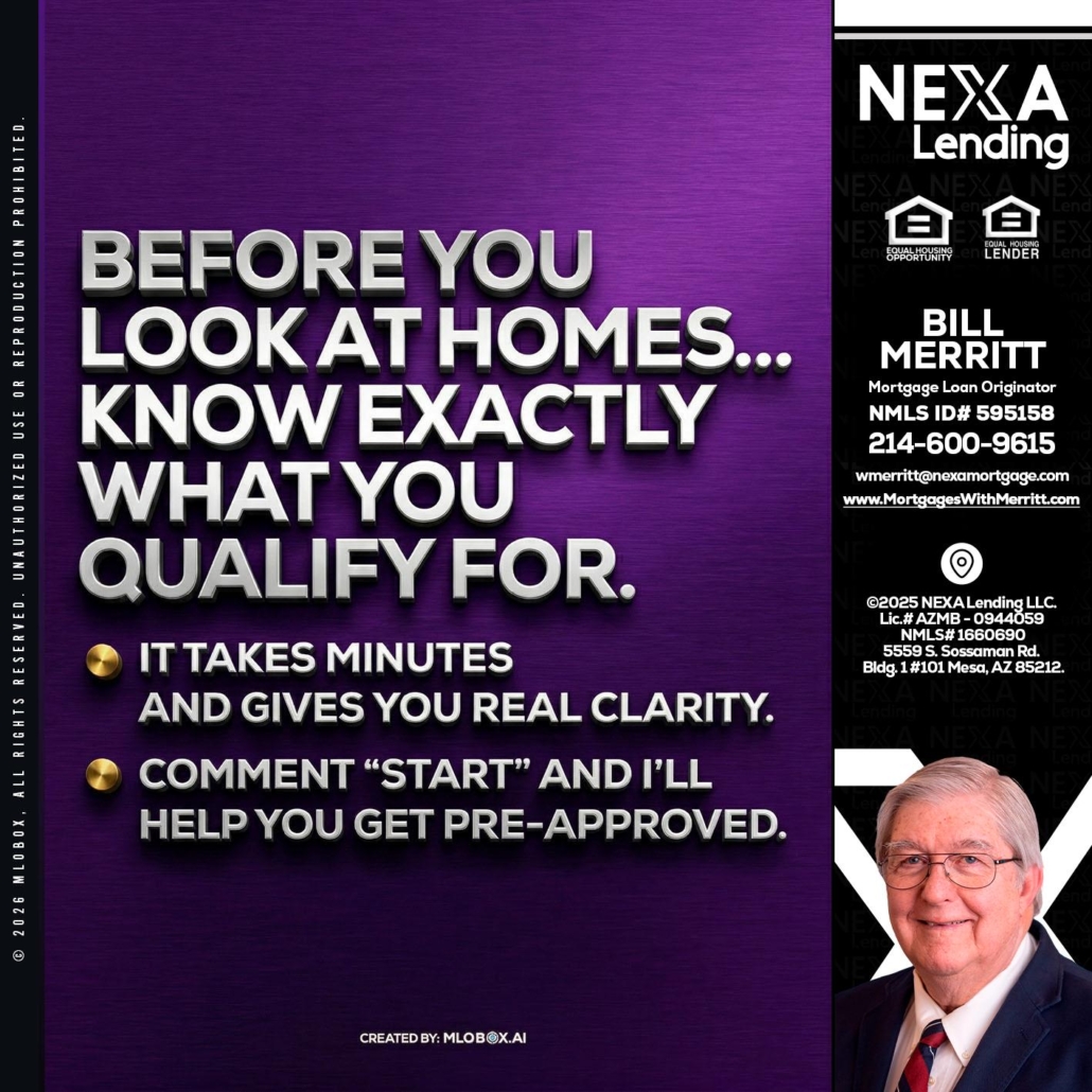 Hi, my name is Bill Merritt. I’m a Loan Officer with NEXA Lending LLC., offering personalized mortgage solutions, fast customized quotes, great rates and service with integrity.