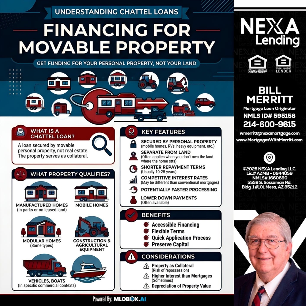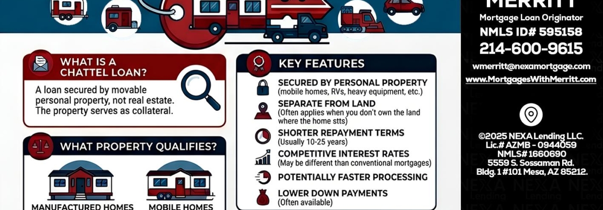 Hi, my name is Bill Merritt. I’m a Loan Officer offering personalized mortgage solutions, fast customized quotes, great rates and service with integrity. If you’re interested in learning more about the Chattel loan or any other, just let me know and I’ll walk you through your options.