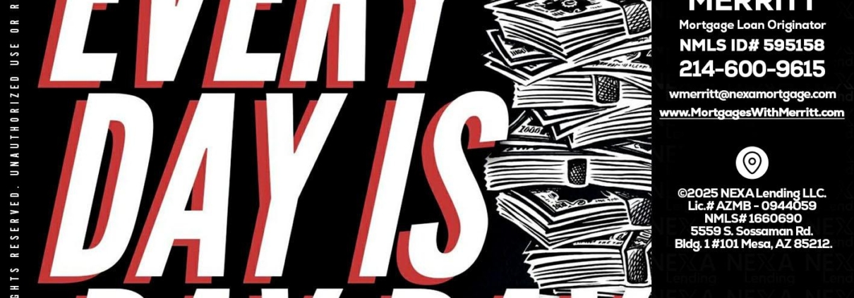 EVERY DAY IS PAY DAY - Bill Merritt -Mortgage Loan OriginatorHi, my name is Bill Merritt. I’m a Loan Officer with NEXA Lending LLC., offering personalized mortgage solutions, fast customized quotes, great rates and service with integrity.
