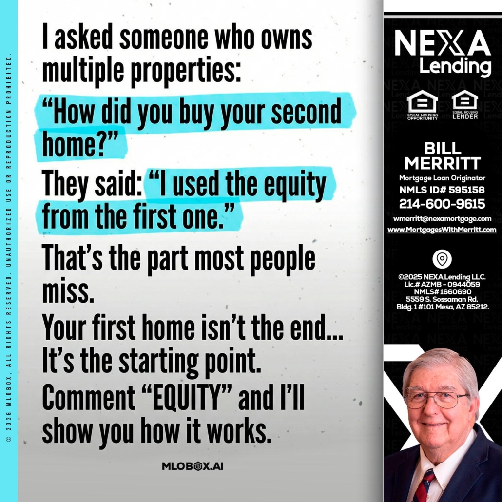 Hi, my name is Bill Merritt. I’m a Loan Officer with NEXA Lending LLC., offering personalized mortgage solutions, fast customized quotes, great rates and service with integrity.