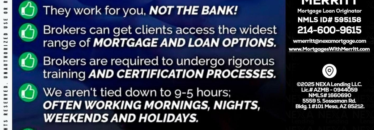 Hi, my name is Bill Merritt. I’m a Loan Officer with NEXA Lending LLC., offering personalized mortgage solutions, fast customized quotes, great rates and service with integrity.