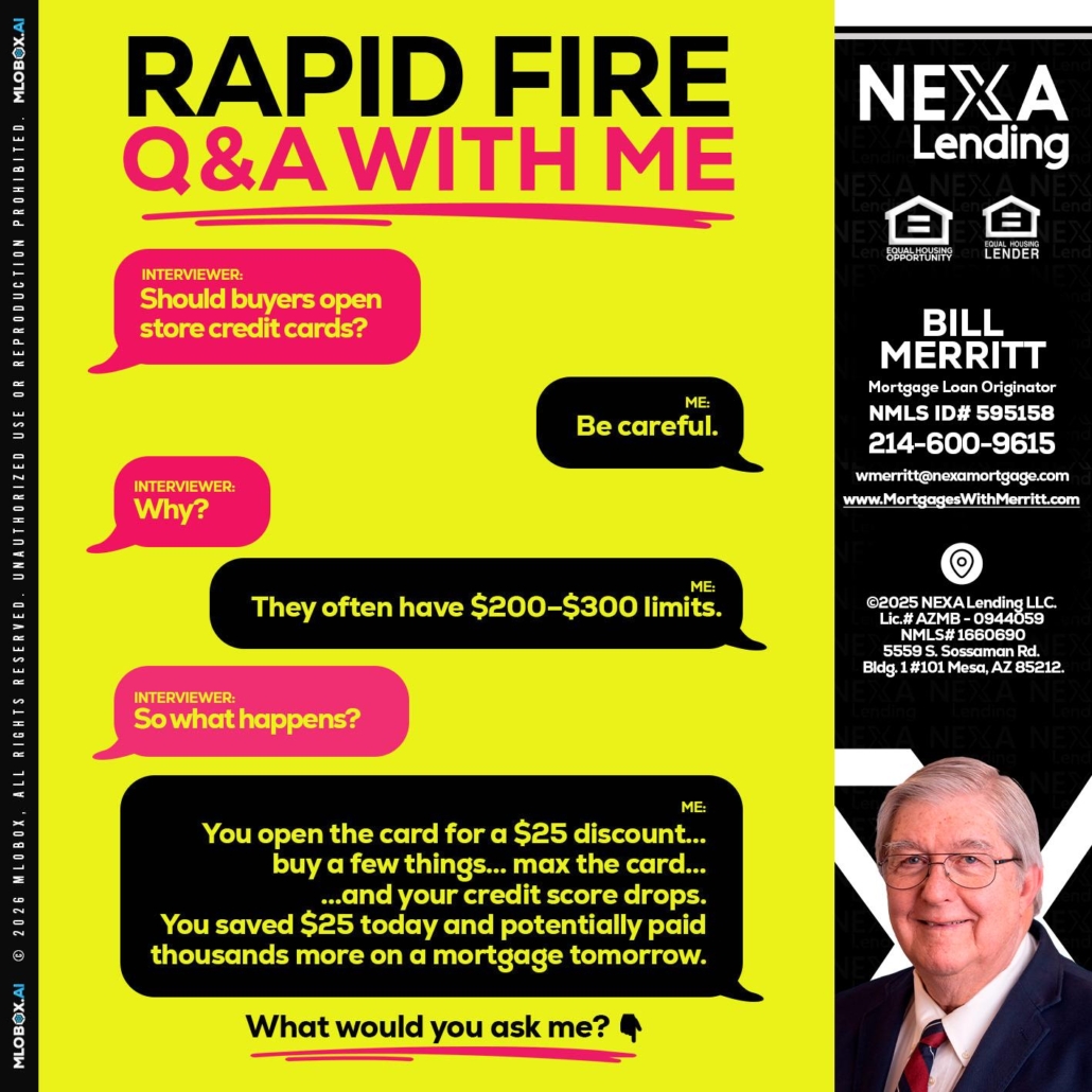 Hi, my name is Bill Merritt. I’m a Loan Officer with NEXA Lending LLC., offering personalized mortgage solutions, fast customized quotes, great rates and service with integrity.