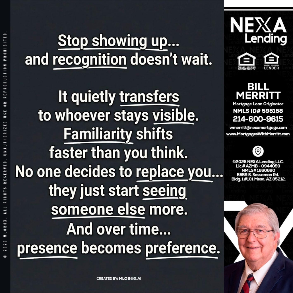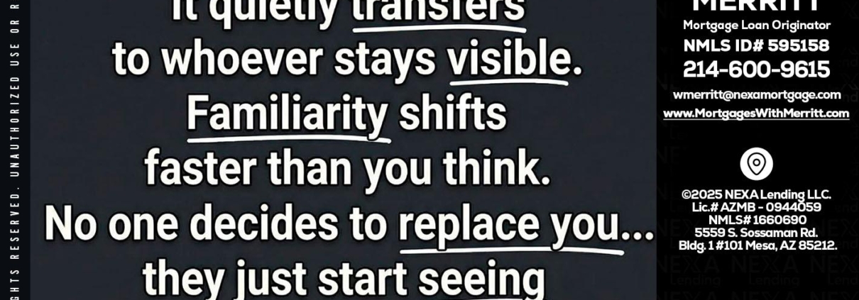 Hi, my name is Bill Merritt. I’m a Loan Officer with NEXA Lending LLC., offering personalized mortgage solutions, fast customized quotes, great rates and service with integrity.