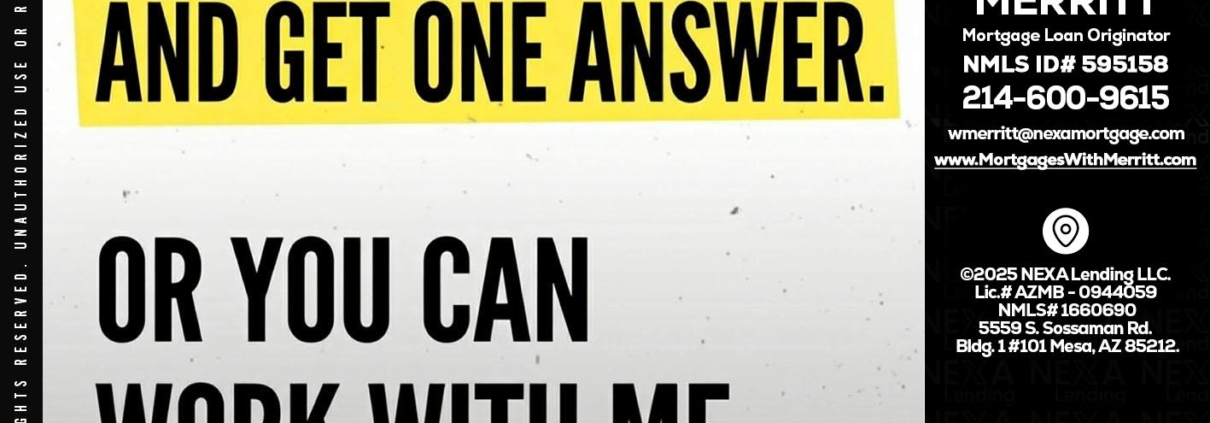 Hi, my name is Bill Merritt. I’m a Loan Officer with NEXA Lending LLC., offering personalized mortgage solutions, fast customized quotes, great rates and service with integrity.
